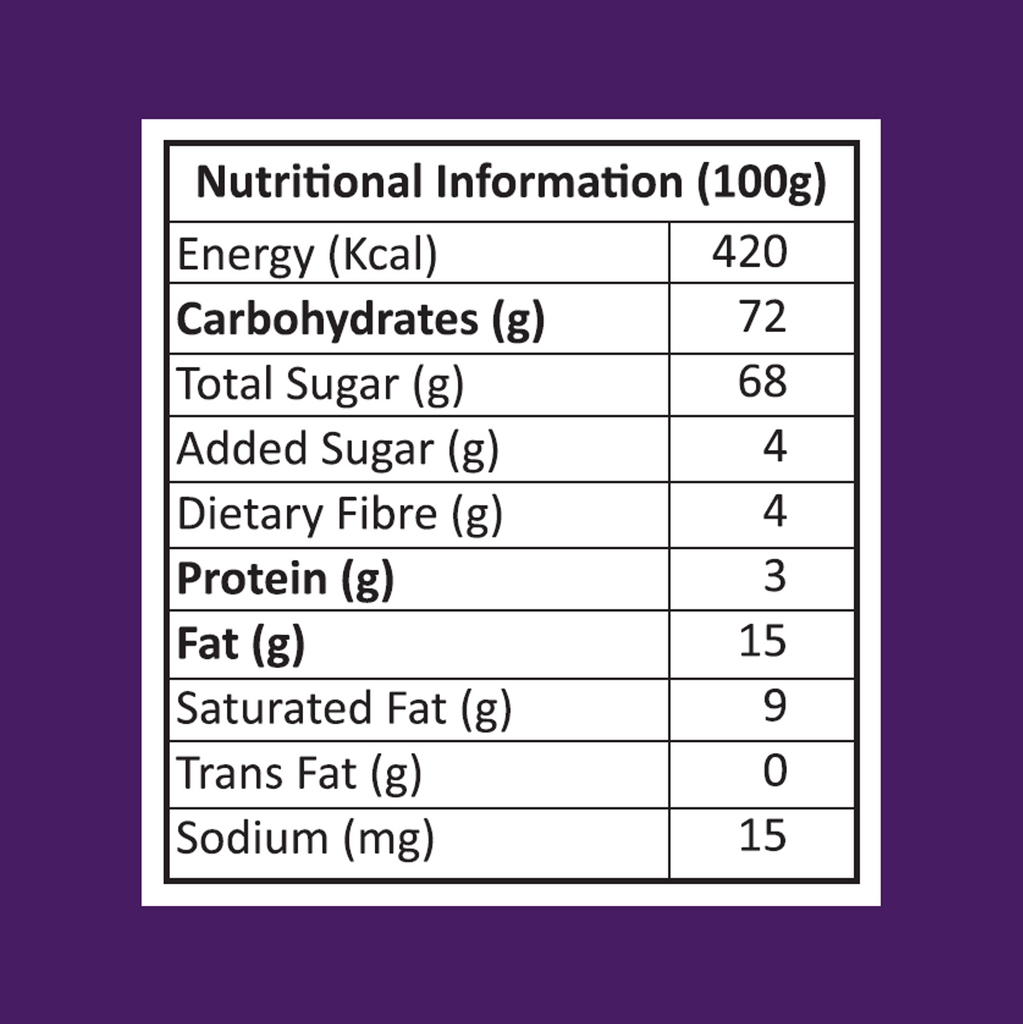 • This product is high on natural sugars from the dates. Enjoy mindfully as even natural sweets are best consumed in moderation as part of a balanced diet.